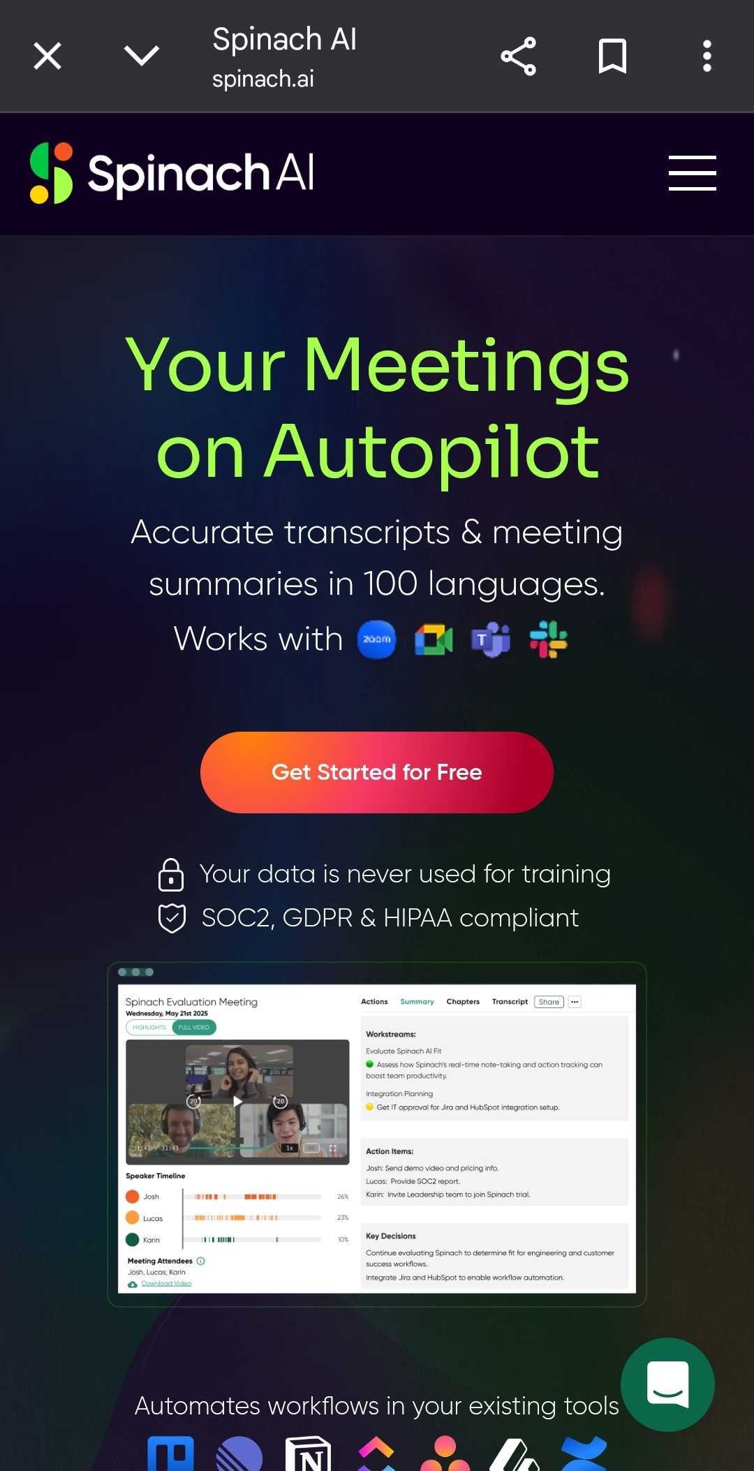 Spinach AI works well for recurring meetings and team discussions where consistency matters. It allows participants to focus on the conversation rather than on documentation.