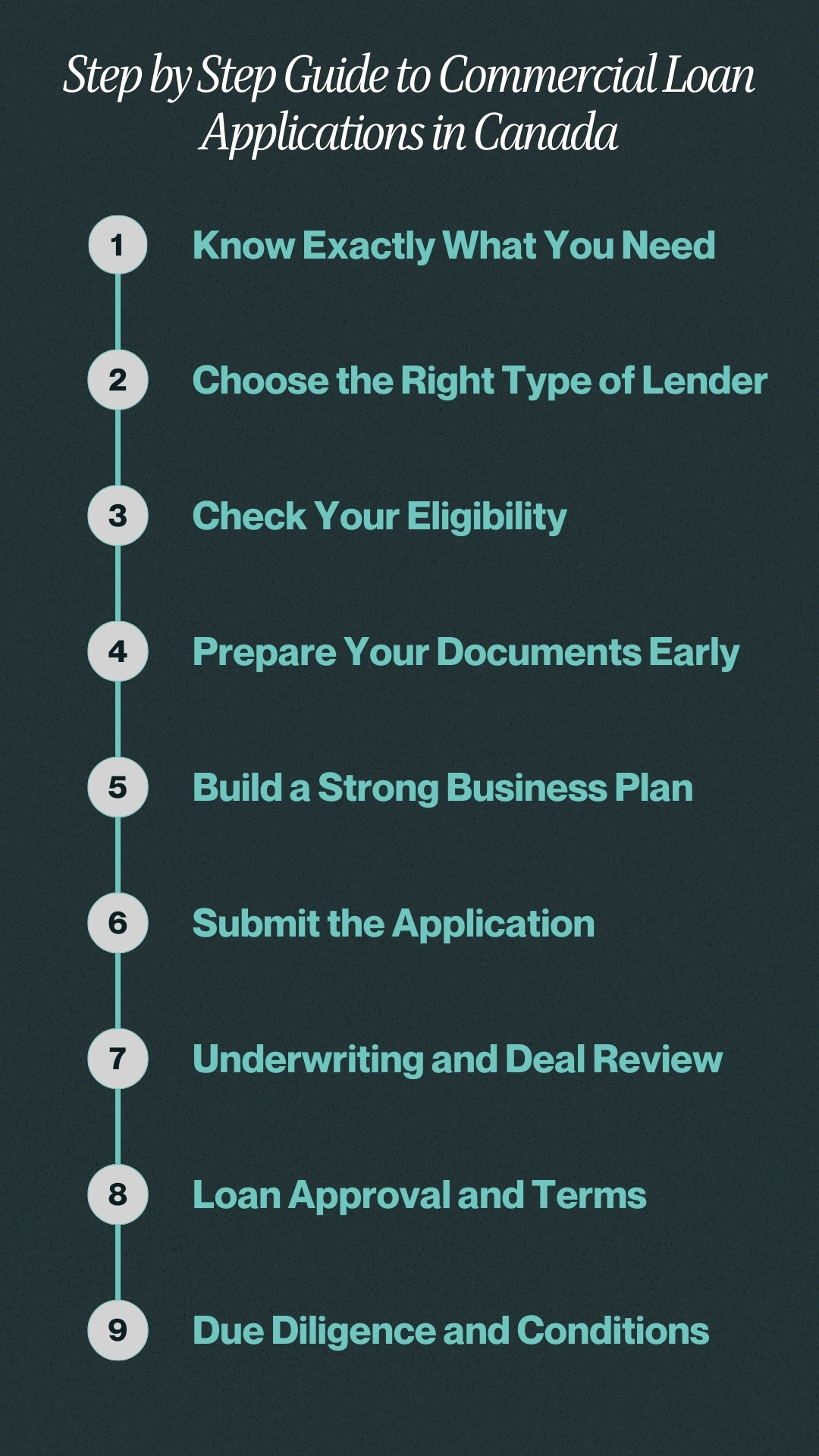 This guide walks you through the Canadian commercial loan process in plain language so you know what to expect and how to improve your chances of success.